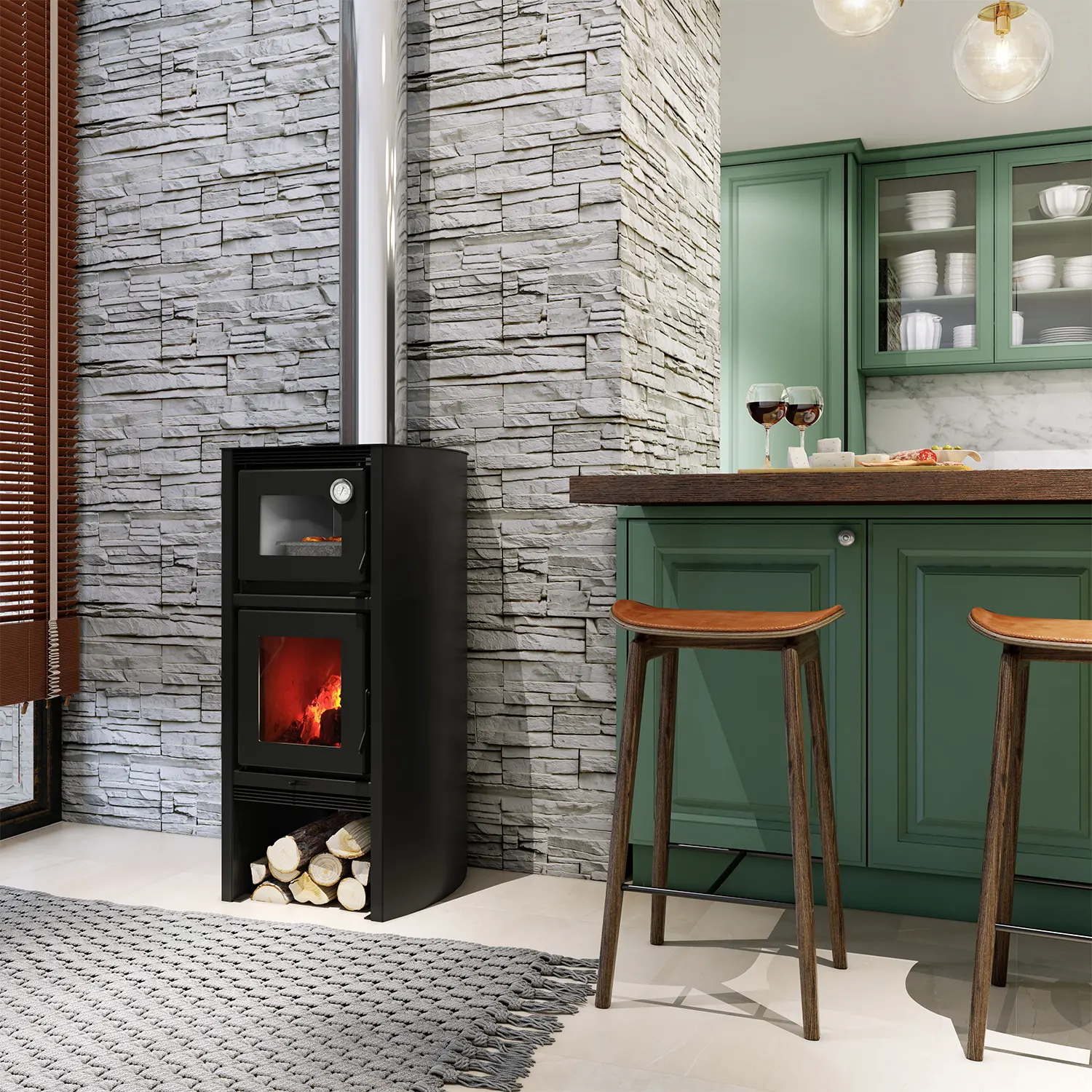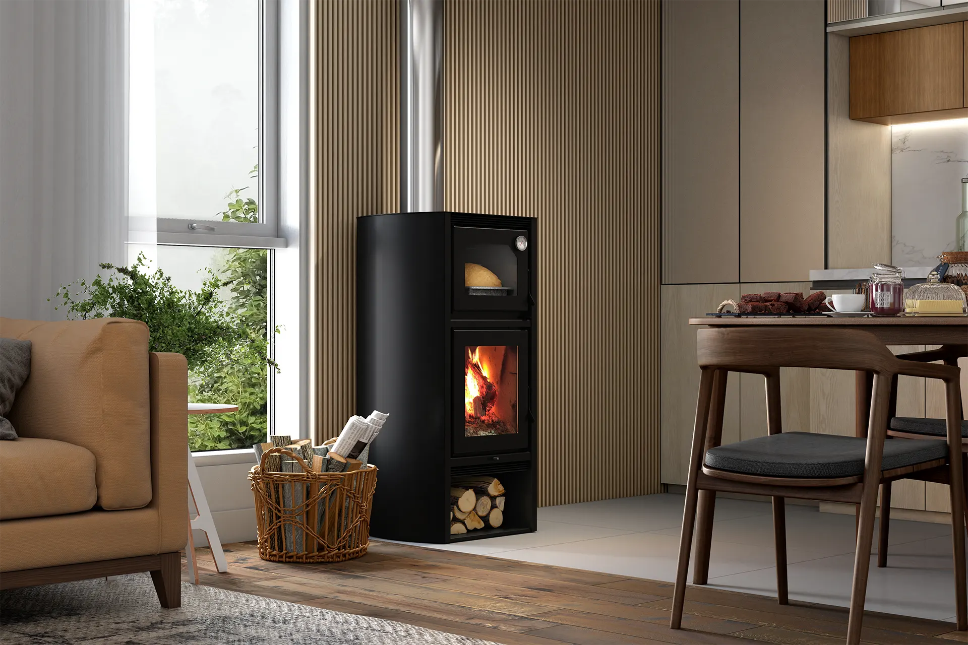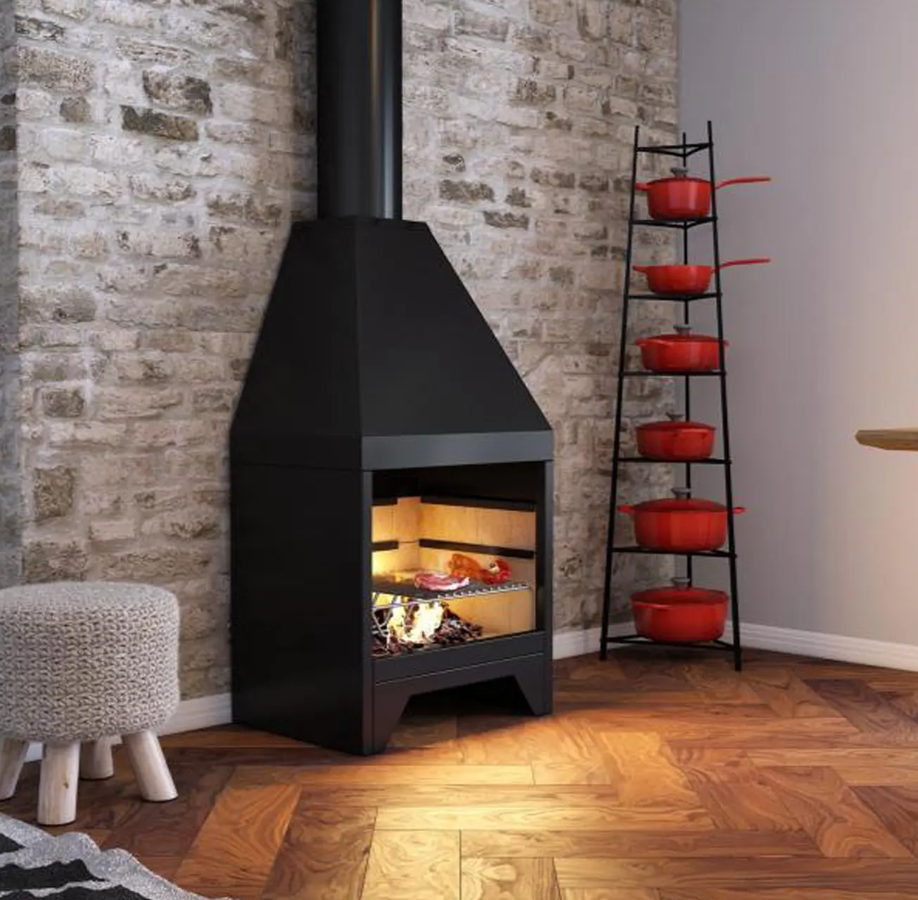 Proporcionan calefacción de alta eficiencia para ambientes grandes y cuentan con un vidrio único en el mercado con aprobación para cocción directa. Además de eficiencia calorífica, tienen una estética moderna, que aporta un toque de diseño a cualquier estilo de cocina o espacio gourmet.
