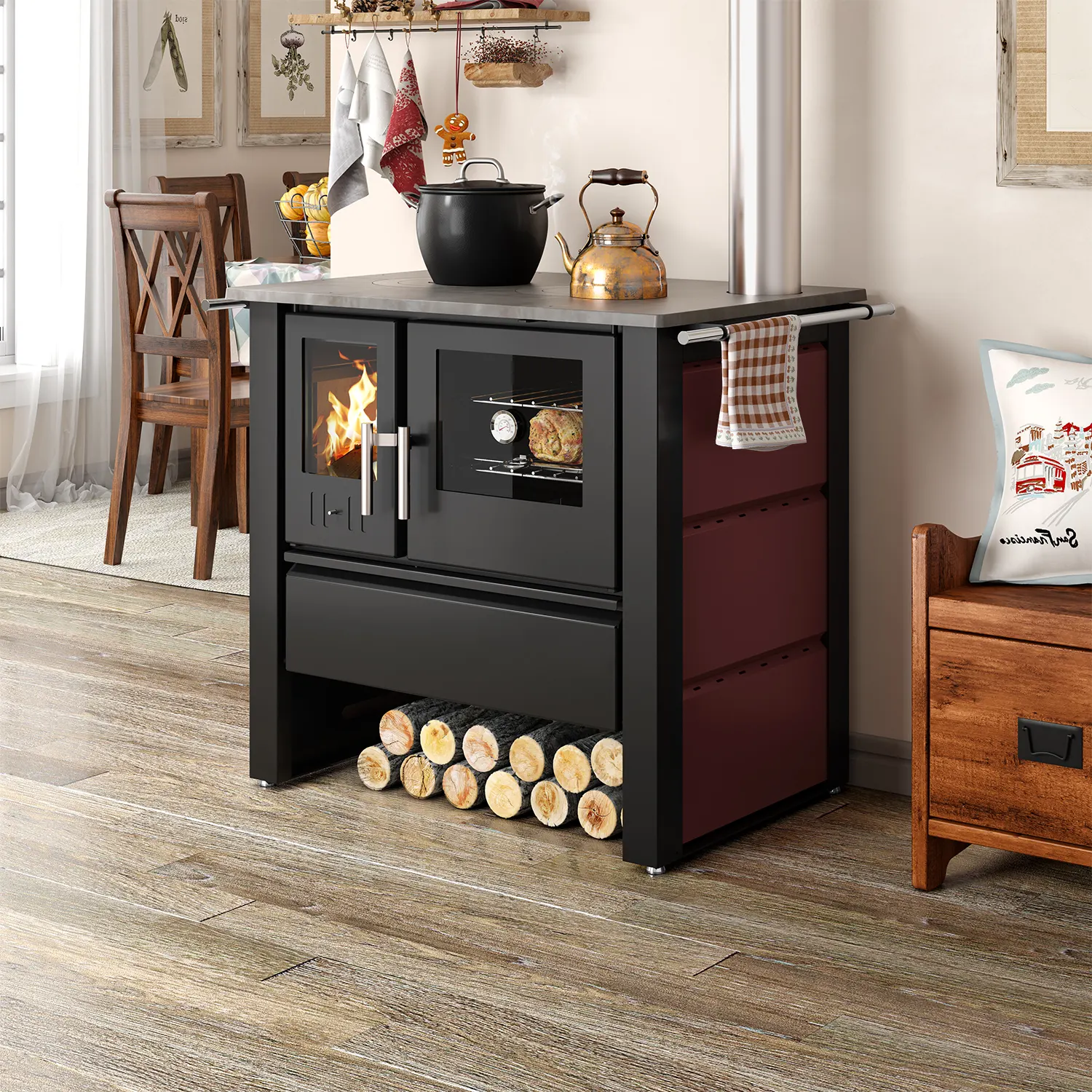 Las cocinas a leña son productos 2 en 1, ya que contemplan la misma tecnología de doble combustión que se aplica a los calefactores y además son aptas para cocinar.